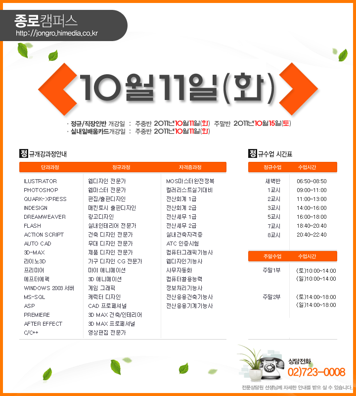 [정규개강] 2011년 10월 정규개강안내