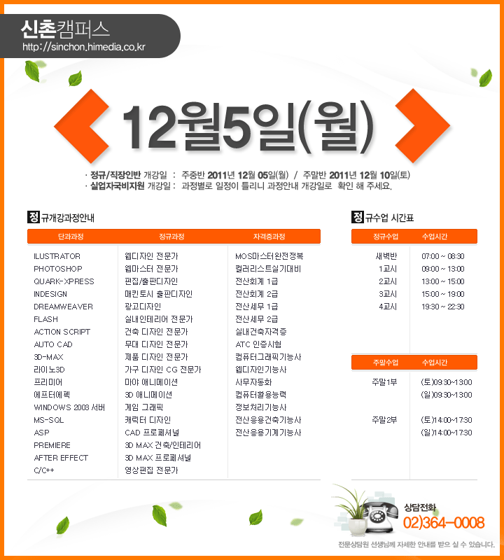 [정규개강] 2011년 12월 정규개강안내